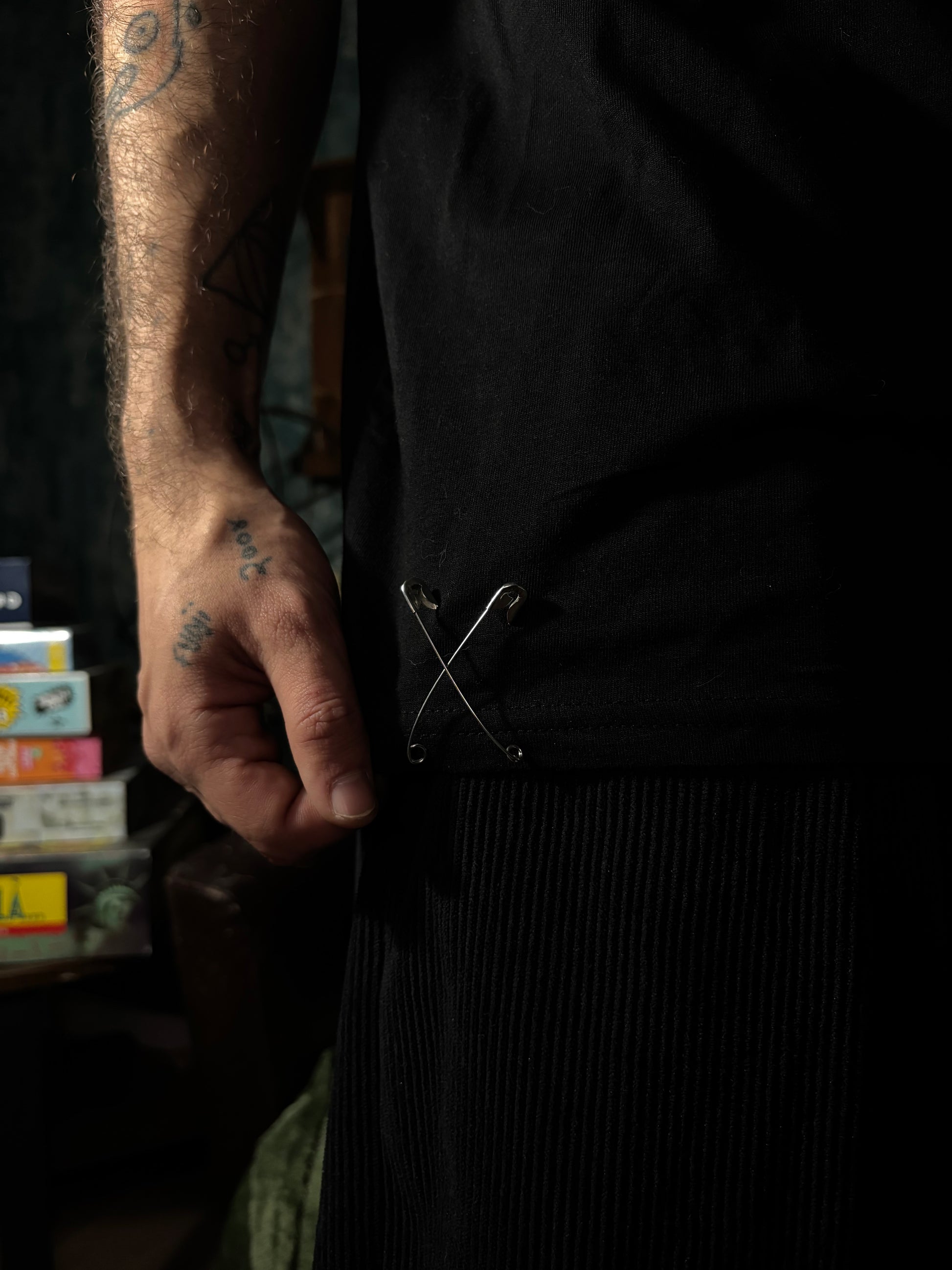 Portez haut et fier ce T-shirt unique "MURDER CROWS" en collaboration avec l'illustratrice Charly! Son style destroy avec œillets, chaînes et ornements en font un véritable bijou. En plus d'être tendance, chaque achat soutient 2 artisans puisque Charly reçoit une commission. Disponible en noir, en coton de qualité supérieure.